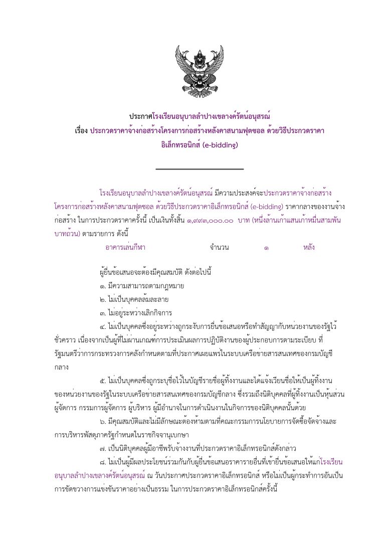 ประกาศ เรื่อง ประกวดราคาจ้างก่อสร้างโครงการก่อสร้างหลังคาสนามฟุตซอล ด้วยวิธีประกวดราคาอิเล็กทรอนิกส์ (E-bidding)